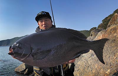 四国西南部は私が足繁く通う尾長フィールド。なかでも中泊は、過去に60cmオーバーの大型尾長を仕留めたことがある大好きな磯です。そんな中泊で、今年の春に63cm、4.1kgの尾長グレを獲ることが出来ました。その日に渡ったのは「コケの西」という磯です。先に中泊は大好きと言っておいて何ですが、実はこの「コケの西」、個人的にあまり得意な場所ではありませんでした。ここは地磯との水道を狙う磯なのですが、日によっては潮が非常に速く、潮が弛んだ一瞬しか釣りになりません。その潮も干満で向きや速さが変わるといった単純なものではなく、磯に乗ってみないとわからない不規則なもの。こんな釣り場特性が、いままでどうにも好きになれませんでした。しかし釣行当日は、運良く潮が緩い日に当たったようです。ただし潮色はよくありません。春磯特有のいわゆるナッパ潮で、マキエを撒いてもエサ取り一尾姿を見せません。しかしながら、根気よくマキエを打ち続けているうち、数匹ですが小魚がチラホラ見えるようになりました。「潮が変わったかな」と思った矢先、一気にウキを引き込むアタリがきました。これが63cmの大型尾長。私にとって中泊で4尾目となる60cmオーバーです。ウキ下は竿1本半でした。
