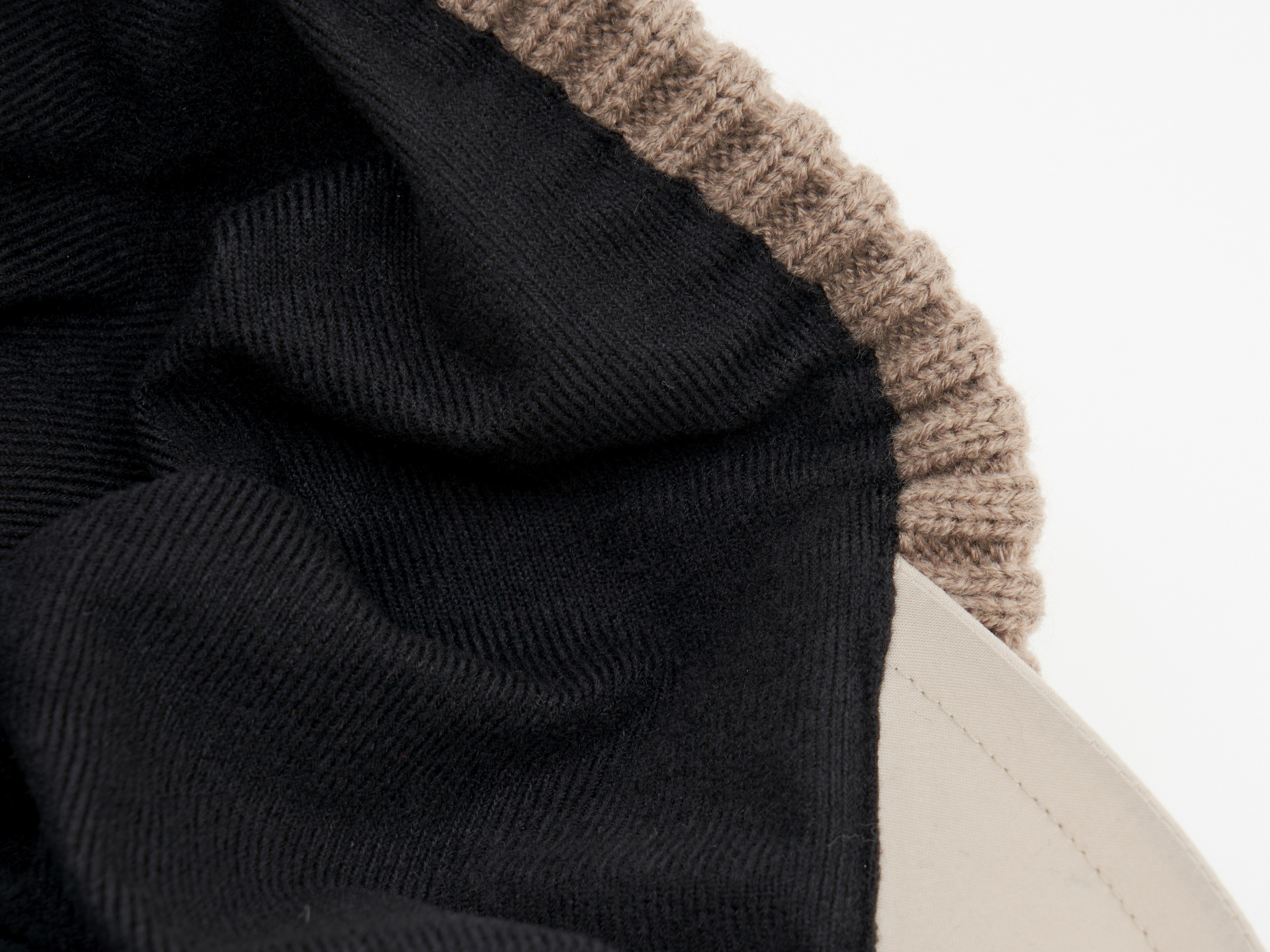 ツバに撥水生地を使用した釣りに便利なニットキャップ