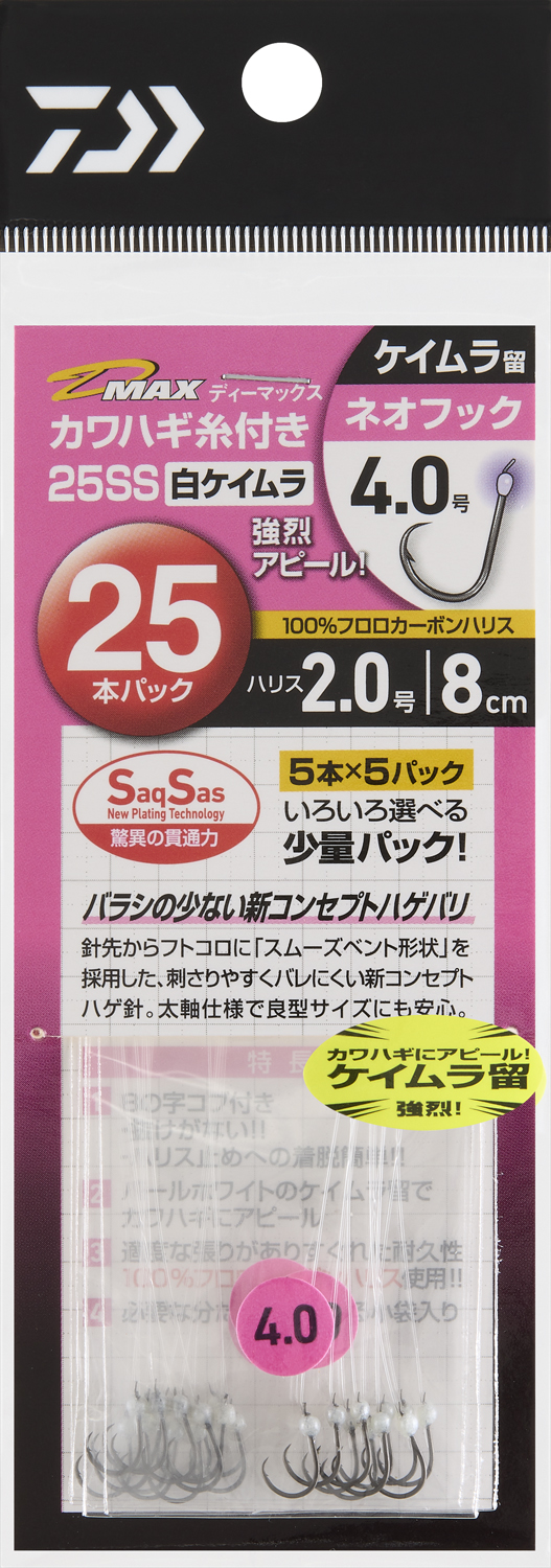 D-MAXカワハギ糸付25SS白ケイムラNH4.5 | 4.5 | 2.5 | 8 | 25 | 1,080 | 4550133466526 |