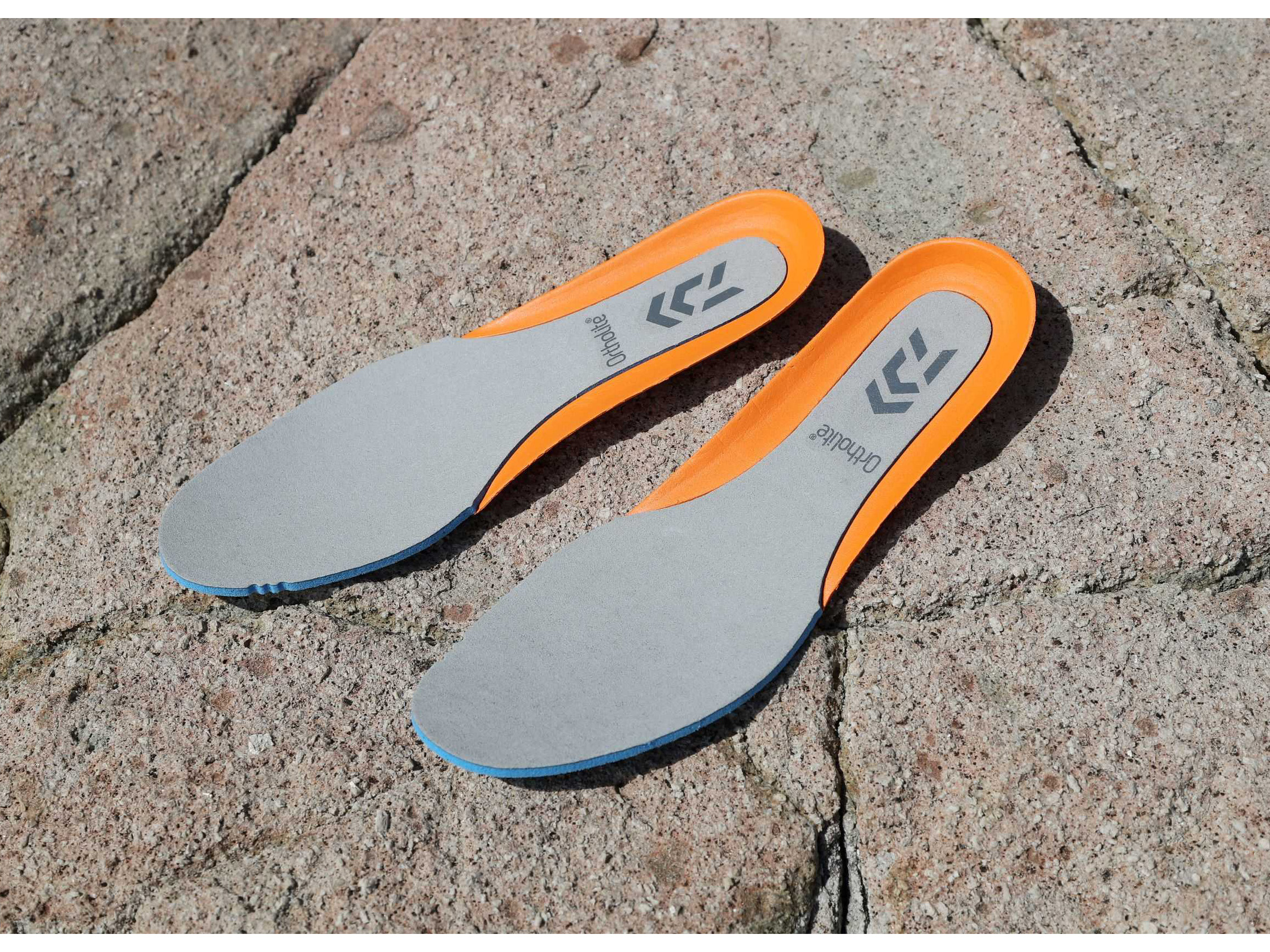 インソールには、【Ortholite オーソライト】を採用。それにより、歩行時のパフォーマンス性アップ、高い通気性、優れた耐久性、軽量性、クッション性を実現。表面には滑り止め加工することで、斜めの磯でも前滑りを軽減し、つま先の痛みを軽減させた。
