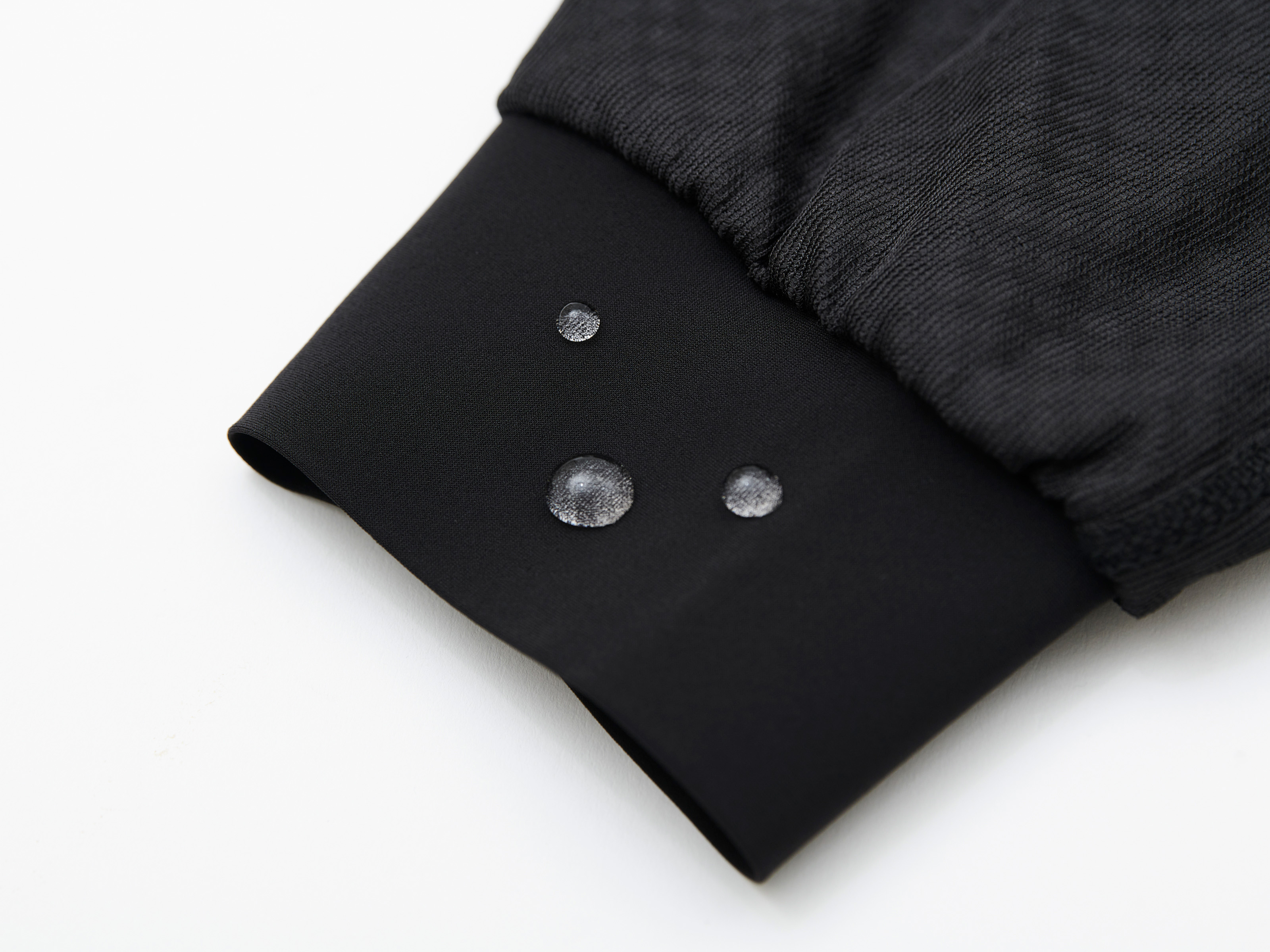 生地表面が水滴を弾き、水分を含みません。常に軽量&ドライにウェアの快適性を保ちます。