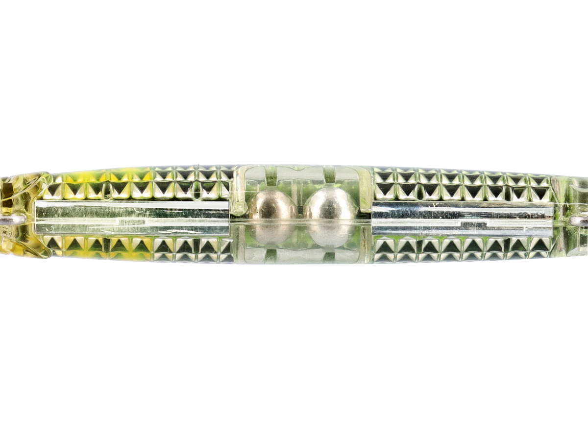 大型のリップが水を受け、まるで水中でアユが苔をはむ様にボトムをトレース出来る。また、ボディにはレーザーインパクトを纏い、強いフラッシングがやる気のある鮎を刺激する。