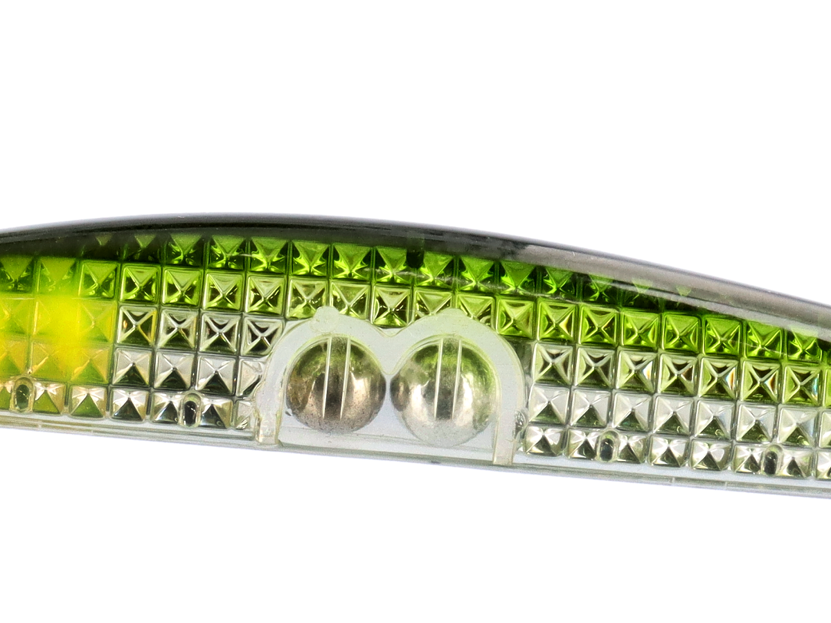 更に、泳いでいる時の反射光の明滅まで再現。夜間や日陰のわずかな光でもベイトフィッシュと同様、昼夜・場所を問わず光でターゲットにアピール。