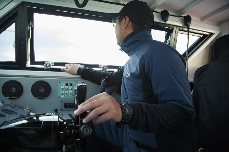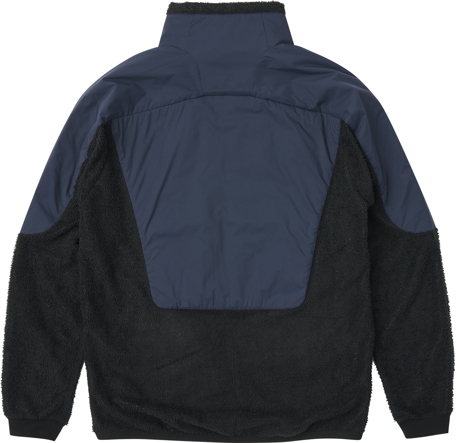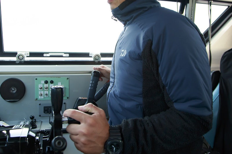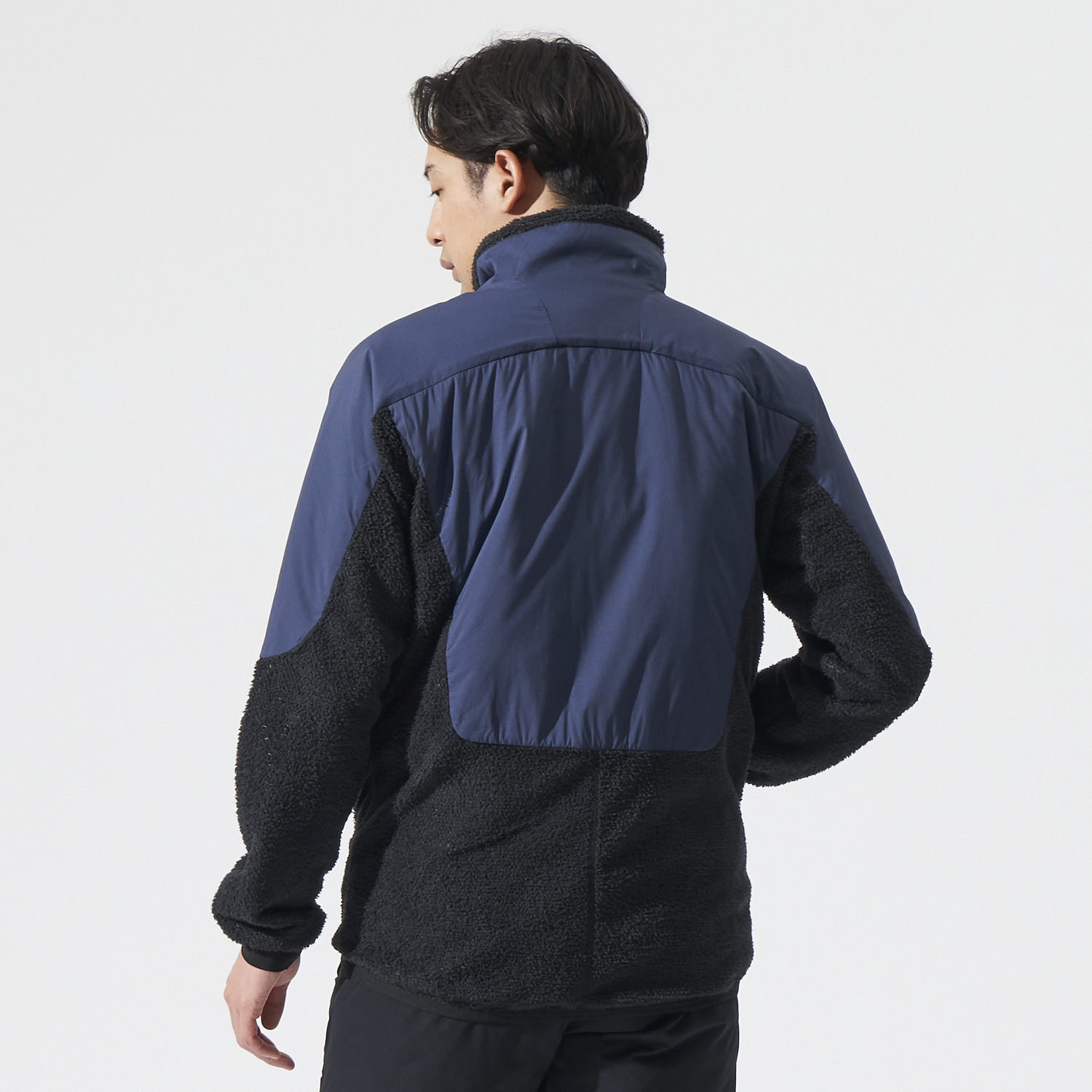 レインウエア等のアウターとのレイヤリング想定した、ハイブリッドジャケット。適材適所に異なる素材を配置し、軽量かつ効率的に身体を温める設計。中綿には遠赤外線を発するダンロテック素材、裏地には部分的に体温を跳ね返す効果のあるアルミを含む素材使用。重ね着やしゃくりの動作などで蒸れやすい脇や、ライフジャケット等と重なりやすい腰部には通気性のあるフリースを採用。さらに袖口には冷たい水を吸い上げにくいよう、撥水ストレッチ素材を採用。