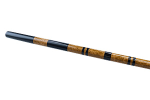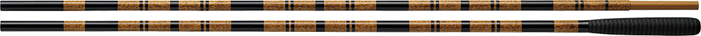 紋竹柄の竹地に立体感ある段塗を施すことで、竿のデザインを選ばない高級感溢れる佇まい。カーボン製竿掛・玉の柄は雨の日でもコミが狂いにくく、長尺使用時もタワみが少ないなど、メンテナンス性の高さが魅力。
