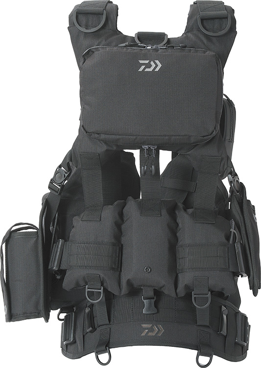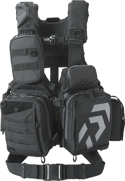 豊富な種類のルアーをポケットに詰め込み、肩で担いでいた点を腰のランバーサポートベルトへ荷重を分散させる仕様を採用。肩への負荷が大幅に軽減。左腰ポケット前面にローテーションポケットを新たに配備し、ルアーケースに戻す手間が省け手返しよくルアーチェンジが可能に。背中のパッド中央に溝を設け、通気性を確保することにより夏場のウェーディングで不快な肩から背中にかけての蒸れを軽減。ベンチクールシステム(背部の分割)と相まって、より快適な釣りを実現。