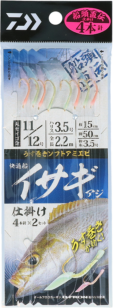快適船イサギ・アジ仕掛け 4本針2セット入り 11/12-3.5 | 3.5 | 3.5 | 15 | 2 | 220 | 60/50/50/60 | 4 | 650 | 4550133250484 |