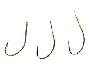 ヒネリのある、かつ線形が太すぎない丸セイゴ針が、吸い込みに適しており釣果に直結する。また針のメッキ(金)が擬餌からうっすら見えるようにすることで集魚効果を更に高める。