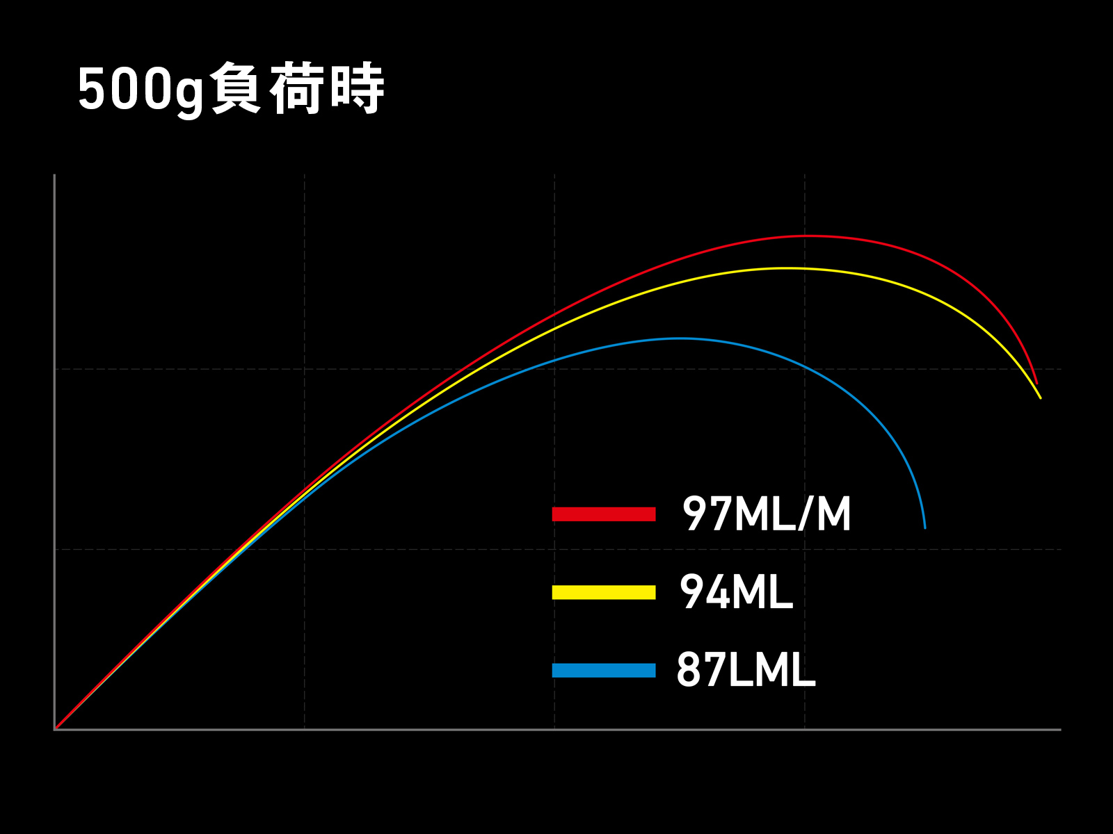 既存品比、4.6%の飛距離UPを達成している。(大野テスター97ML/M投擲試験結果)