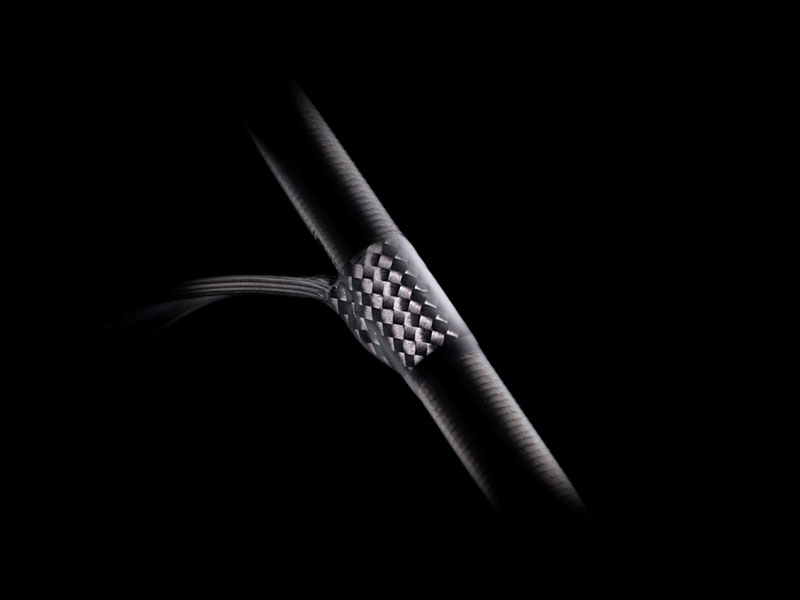 糸(スレッド)ではなく、強固に編み込んだカーボンクロスでパーツを固定することにより、パーツの取り付け部の軽量化を実現。また、このCWSは保持力(ガイド取り付け部のネジレ剛性)や耐久性(ひび割れ強度)も向上している。カーボンクロス特有の外観によって、存在感を主張する。