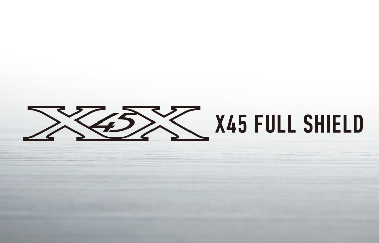 キャスティング、アクション、フッキング、ファイトなどの動作の中で発生するネジレを、最も発生しやすいブランクの先端から45°のカーボンバイアスクロスで最も効果の高い最外層から締め上げた構造がX45フルシールド。これにより、ネジレ剛性が飛躍的に向上しました。これにより、今まで以上のキャストアキュラシーとロッドが持つ本来の性能が引き出すことが可能となりました。