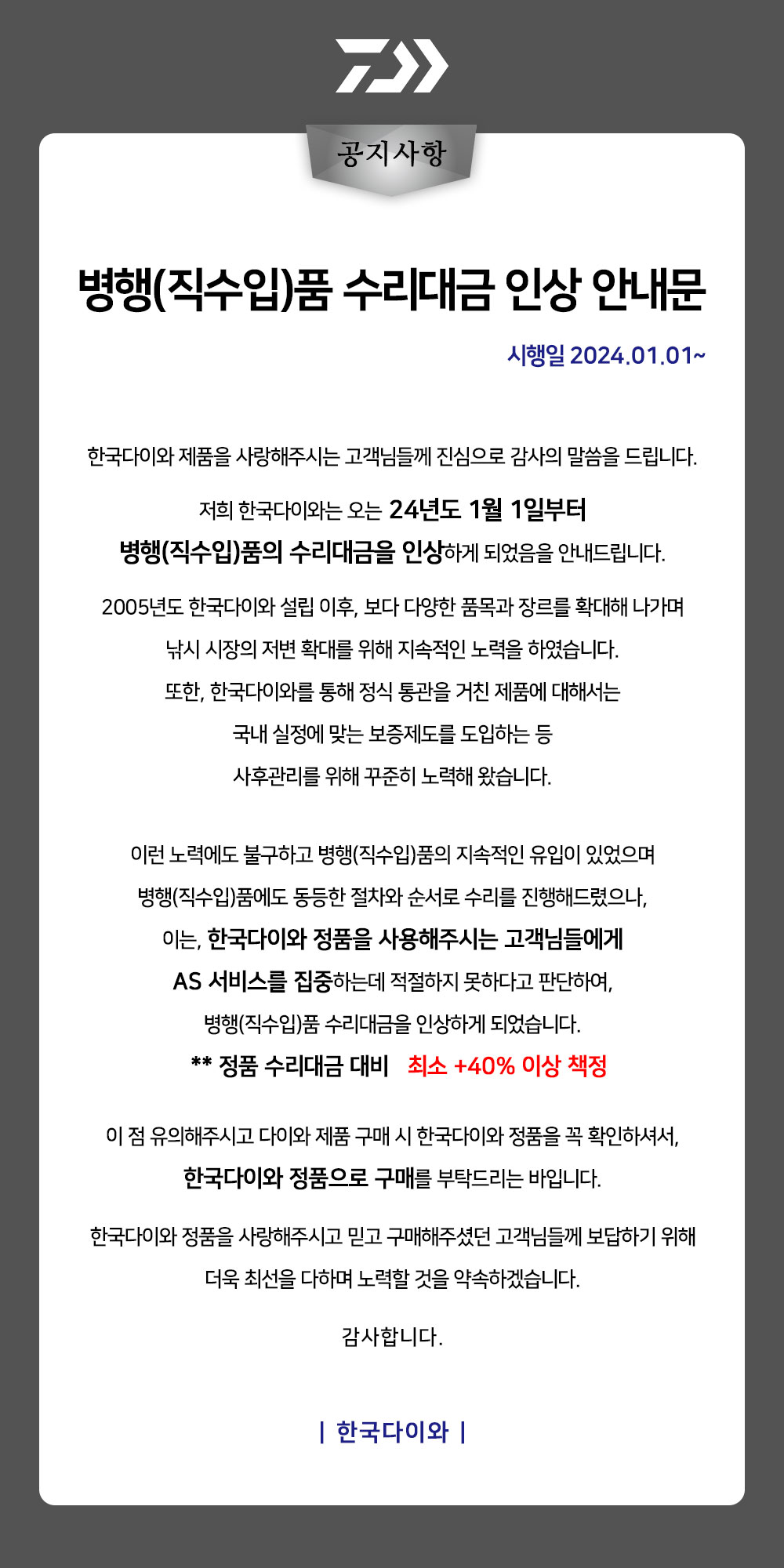 [공지] 병행(직수입)품 수리대금 인상 안내문
