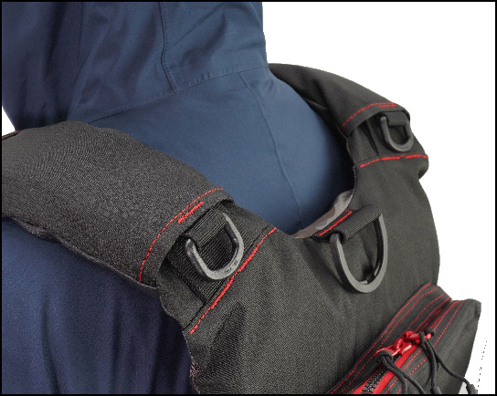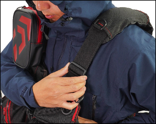 태클의 무게, 신체에 대한 부담을 분산. 어깨 벨트의 쿠션성 UP.