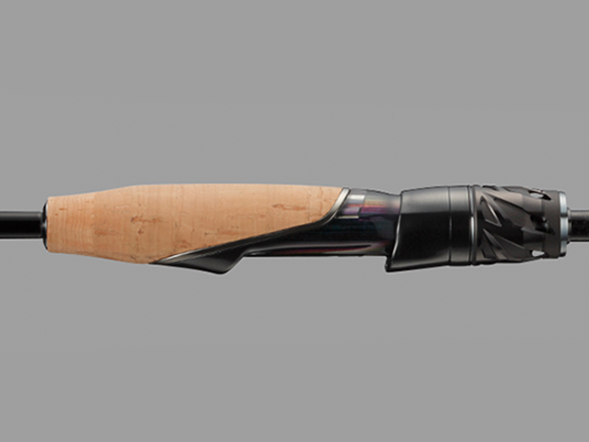 검지를 쉽게 따라갈 수 있도록, 3핑거~풀핑거 그립(릴 풋을 손가락으로 끼우지 않고 모든 손가락이 릴 풋보다 팁 쪽에 위치하는 팜밍)에서도 블랭크와 전면 그립 사이의 단차가 적어 섬세한 조작이 가능해집니다.