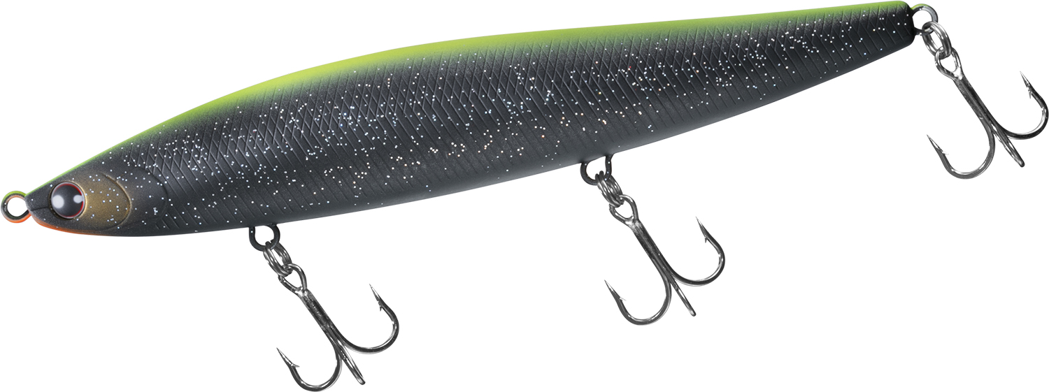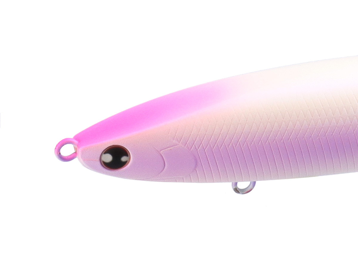 릴링만으로는 전작의 와이드 슬라롬에서 타이트 슬라롬으로 변경되었습니다. 슬라롬에 미세한 롤이 들어가도록 조정되어, 때때로 치도 액션이 들어가 씨배스가 먹이를 먹기 쉬운 틈을 만들어 줍니다. 본 소재를 채택하여 액션의 선명도도 향상되었습니다. 로드 조작을 추가하면 표층에서 트위칭 베이트로도 활약합니다.