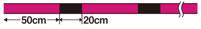 스페셜 핑크 50cm에 블랙 마킹 20cm를 반복하여 표시함.
