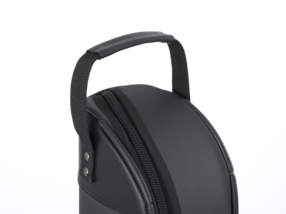 원형 로드 케이스가 갯바위에서 굴러가는 것을 방지하는 프로텍터 쿠션. 뒷부분(쿠션 중앙부)은 장착 시 평평해지도록 설계한 특수한 형태. 발판이 좋지 않은 갯바위에서도 안정적으로 로드 케이스를 놓을 수 있다.