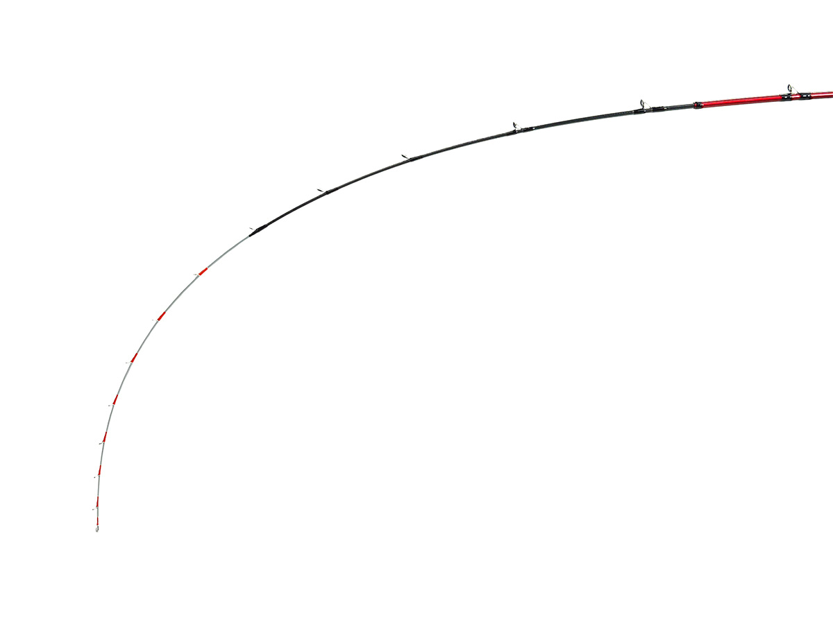 64 | 입질과 끈기가 뛰어난 6:4 조율. 엉덩이 부분까지 부드럽게 구부러져 낚싯대 전체가 쿠션이 되어 파이팅 중 바레를 방지해준다. 입질을 중시하는 낚시나 찌낚시와의 궁합이 뛰어나다. 크게 휘어지는 몸통과 잘 어울리는 카본 튜블러 초릿대. |
