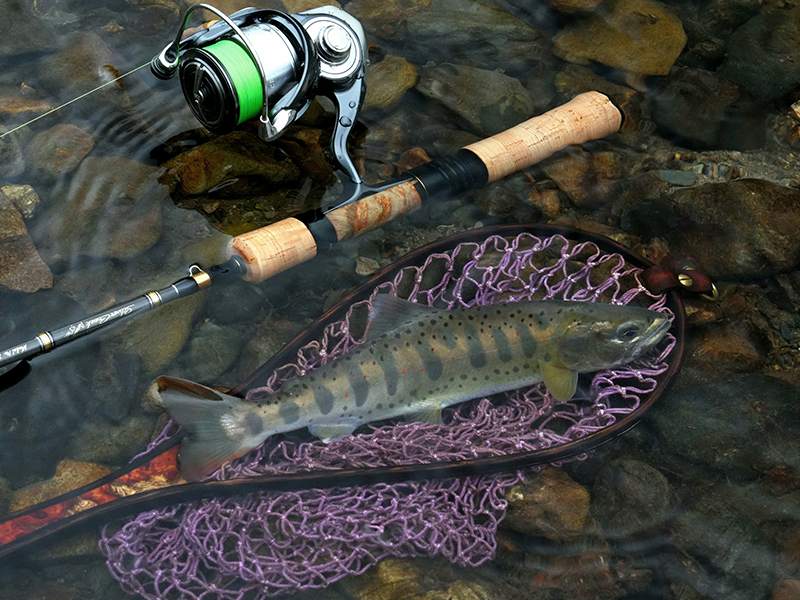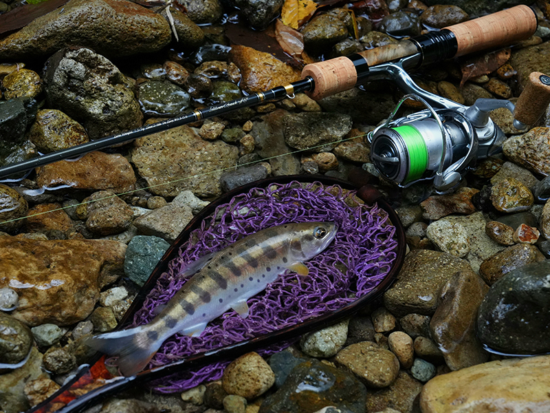 テクニカルキャストを多用し、小渓流をリズムよく釣っていくスタイルはオーラム48ULが卓越していますね。軽快でシャープ。サイドキャストのフィーリングは特に良いんです。