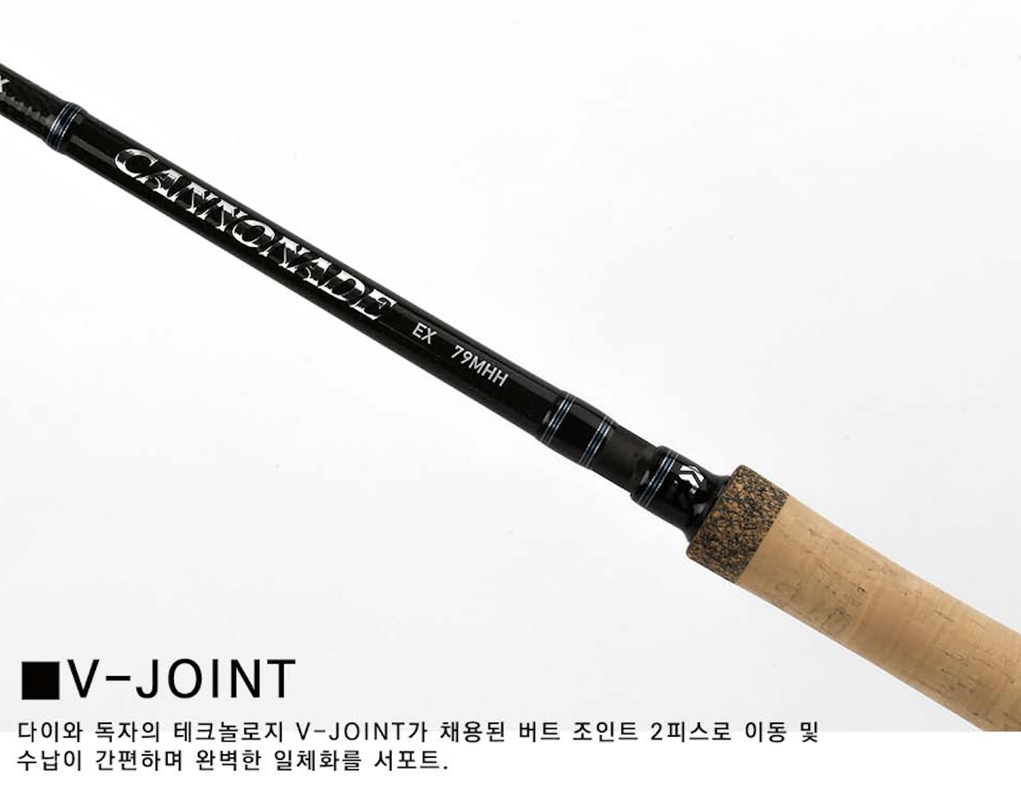다이와 독자의 테크놀러지 V-JOINT가 채용된 버트 조인트 2피스로 이동 및 수납이 간편하며 완벽한 일체화를 서포트