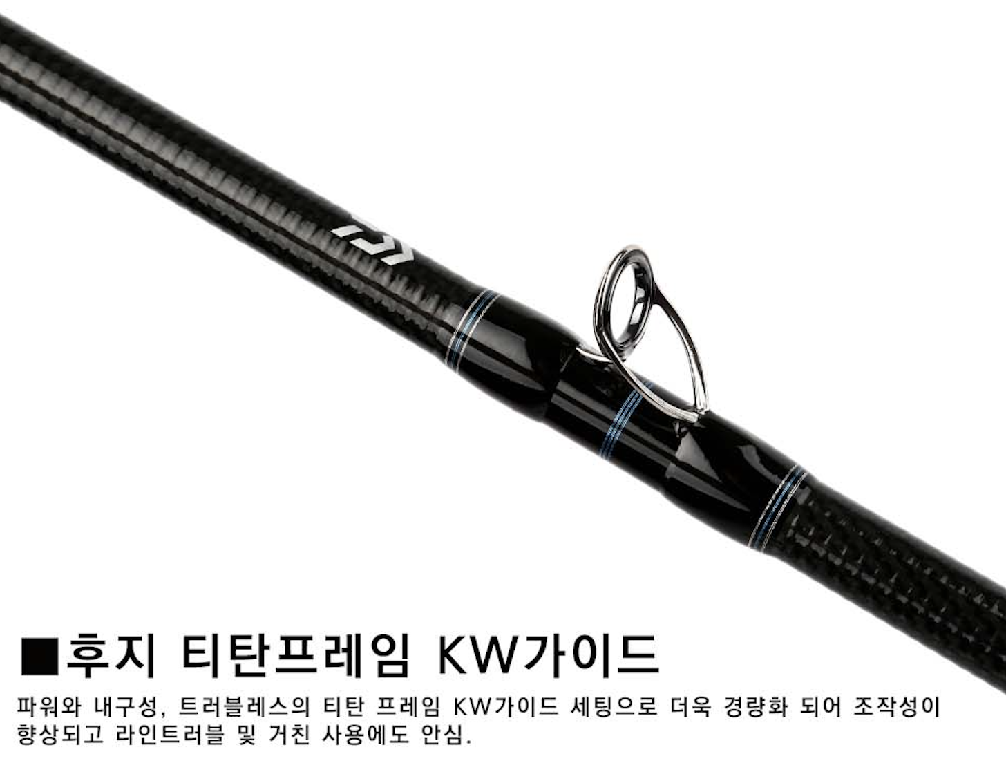 파워와 내구성, 트러블레스의 티탄 프레임 KW가이드 세팅으로 더욱 경량화 되어 조작성이 향상되고 라인트러블 및 거친 사용에도 안심.