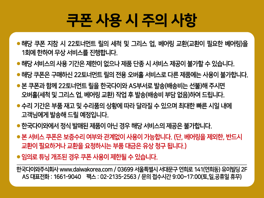 1. 한국다이와 정품을 구입하신 고객님을 위한 특별 1회 오버홀 서비스