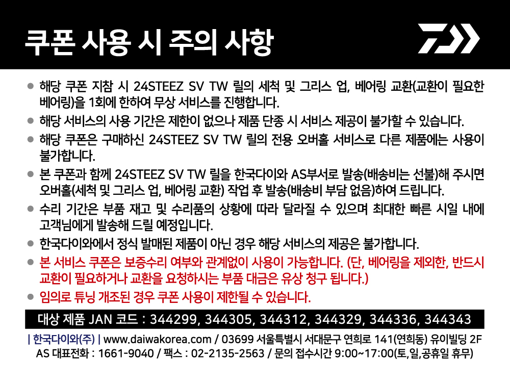 1. 한국다이와 정품을 구입하신 고객님을 위한 특별 1회 오버홀 서비스