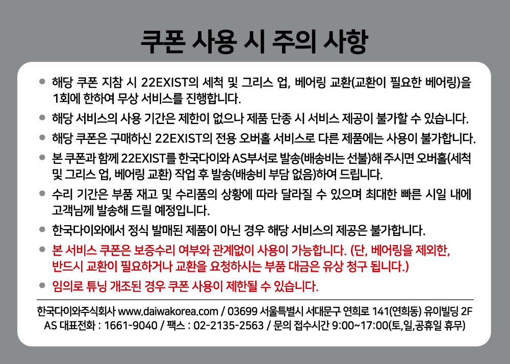 1. 한국다이와 정품을 구입하신 고객님을 위한 특별 1회 오버홀 서비스