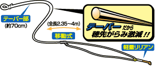 초릿대 쪽이 굵고, 실 가라미가 급격하게 줄어드는 테이퍼 라인