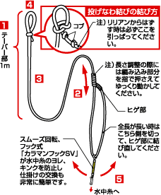 채비 교체가 간편하고, 금속 실의 꼬임과 꼬임에 강한 초경량 카라만 후크 SV를 채용.