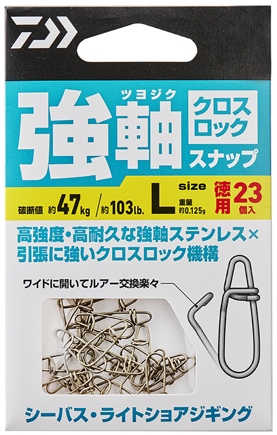 지금까지 없었던 독자적인 크로스록 스냅 사양으로, 고강도, 개폐의 용이성, 루어 교체의 탈착이 더욱 원활해졌습니다.