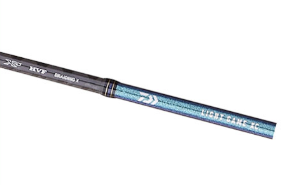 다이와 독자의 고탄성 경량 소재 HVF 채택, 뒤틀림 방지 기술인 X45와 BRAIDING-X로 블랭크 보강