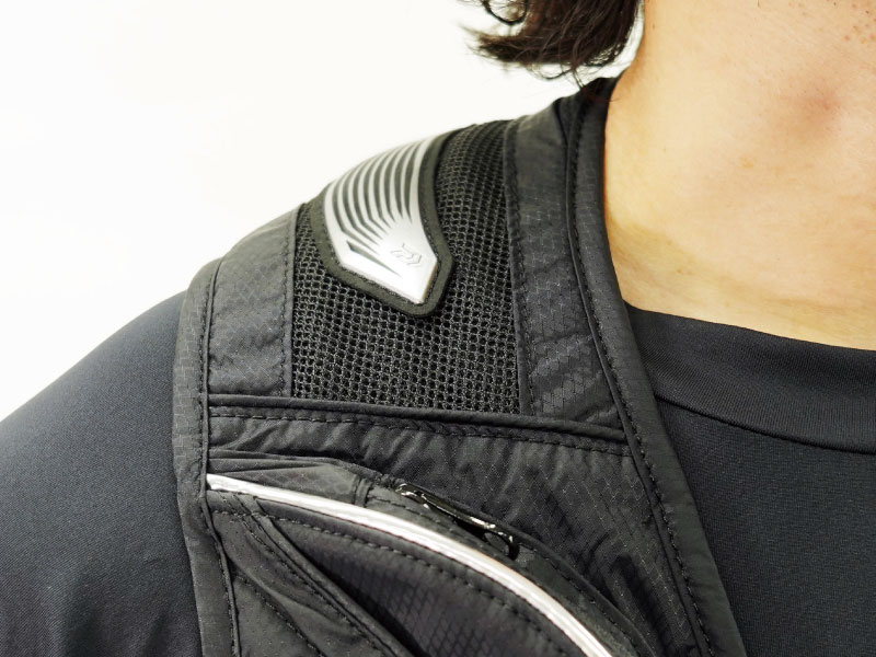 포켓 입구에 약 22×15 ㎝ 크기의 보냉제를 넣어 몸의 등 부분을 식힐 수 있는 폭염 대책의 신 기능.