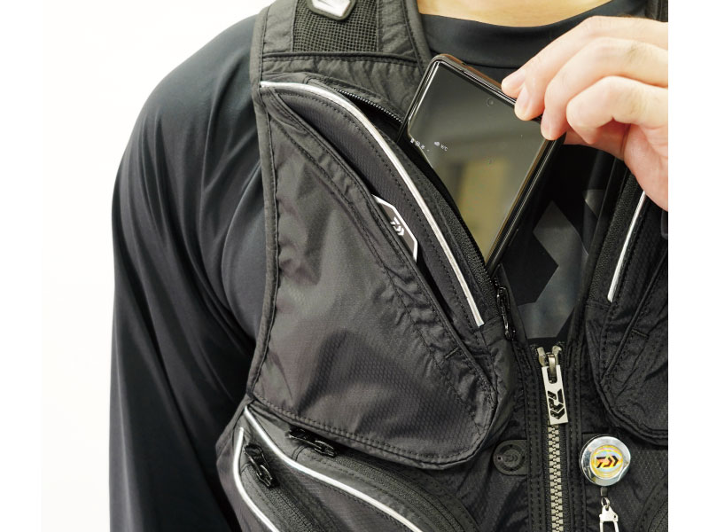 가슴 포켓은 대형 스마트폰을 수납할 수 있는 디자인