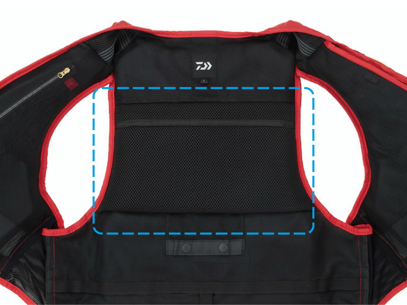 2WAY 서모 해치백 시스템 탑재. 본체의 메인 소재도 메쉬를 채택하여 통풍이 좋은 설계 구조. 더운 시기에는 등판을 접어 열고 시원하고 쾌적한 낚시가 가능.