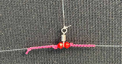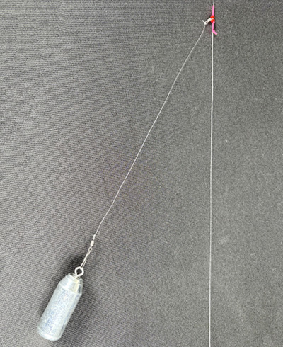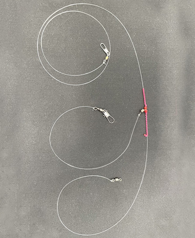 싱커 방향 리더의 길이를 원하는 길이로 다시 매듭을 할 경우에는 다양하게 채비의 변화를 줄 수 있음.