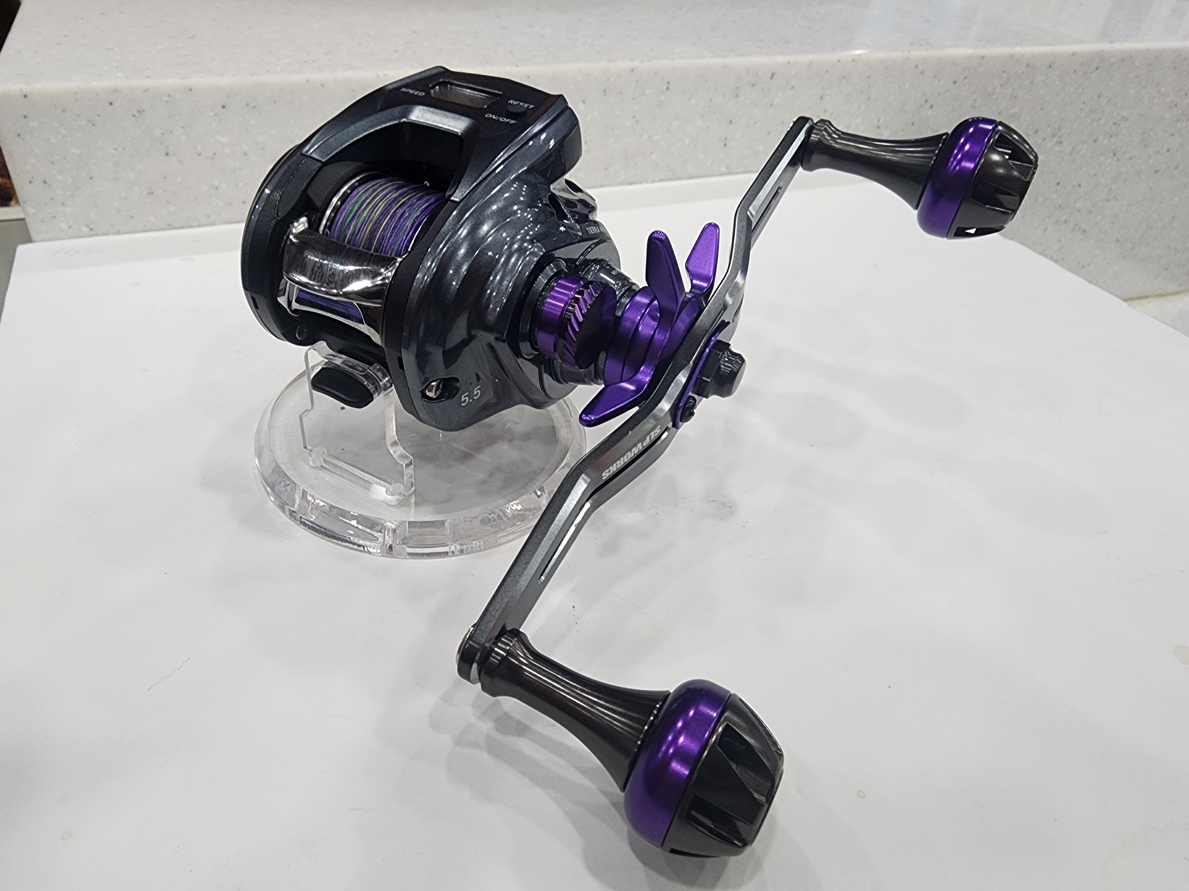 | 품명 | 권사량(cm/핸들1회전당) | 기어비 | 무게(g) | 최대드랙력(kg) | 표준권사량 PE(호-m) | 핸들길이(mm) | 베어링 볼/원웨이 | 권장 소비자가(엔) | JAN코드 |
