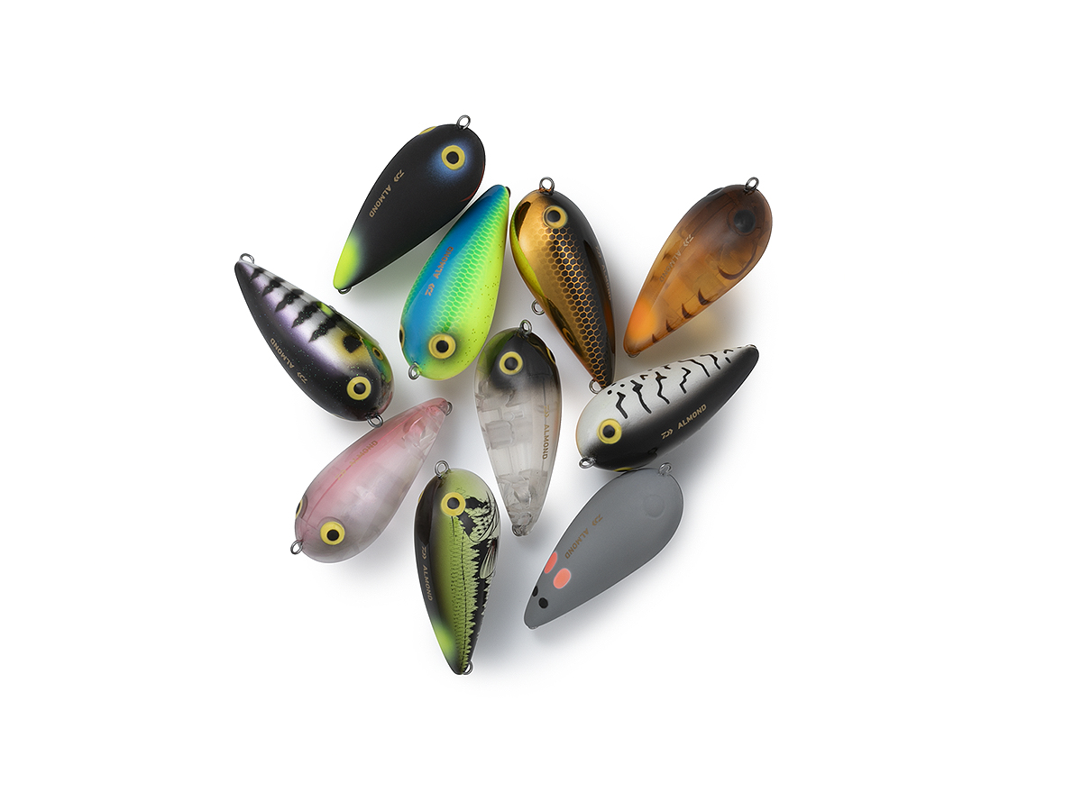 압박이 심한 터프한 필드에서 루어의 크기를 줄이면서도 먼 거리의 물고기에 접근하기 위해 개발된 것이 아몬드다. 싱커를 연상시키는 모양은 캐스팅 시 공기 저항을 줄여 안정적인 비거리에 기여한다. 또한, 8g의 무게로 가벼운 태클에서도 안정적인 캐스팅이 가능하다. 액션은 이동 거리를 줄인 테이블 턴 액션. 미세한 액션을 해도 움직임이 흐트러지지 않고 경쾌한 액션을 구사할 수 있다. 데드 슬로우 리트리브에서는 좌우로 흔들리며 슬라럼을 하는 액션도 매력적이다. 탑워터 낚시를 시작할 때 추천하는 제품 중 하나이다.
