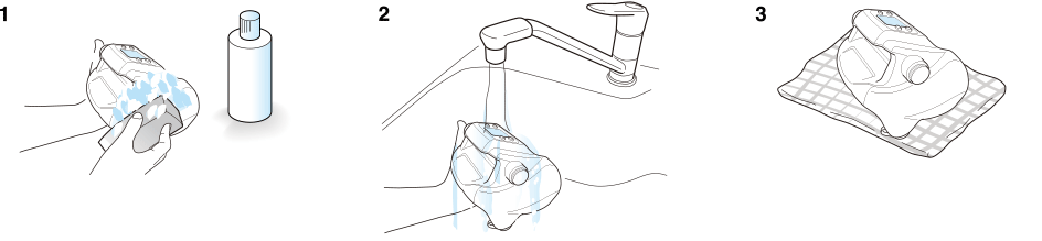 1. Laver le moulinet avec une éponge douce et un détergent comme ceux utilisés pour la vaisselle. (Ne pas utiliser un détergent synthétique).