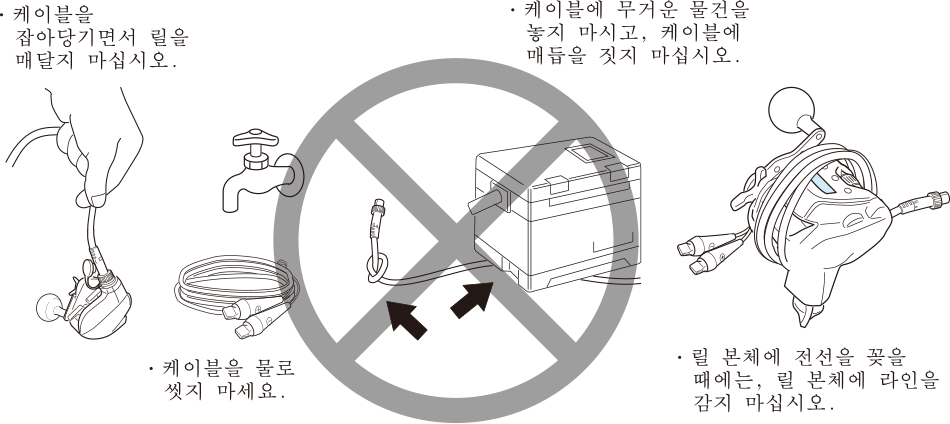 | ・ | 케이블이 노후한 경우 단선 또는 단락 등 고장을 일으킬 수 있으므로 릴 성능 유지를 위해 2년에 한 번씩 케이블을 교체할 것을 추천합니다. |