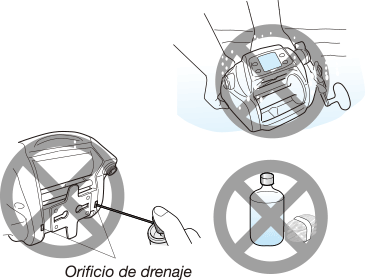 Evite absolutamente lubricar el orificio de drenaje. |
