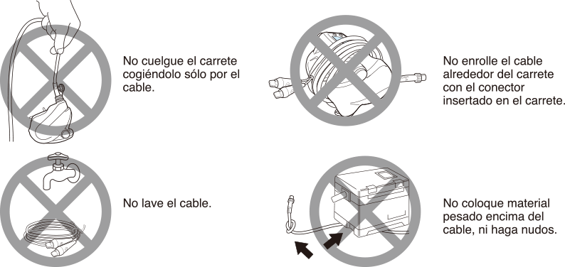 Observe las siguientes restricciones para evitar problemas con el cable. No corte o conecte el cable por su cuenta, podría causar problemas involuntarios.