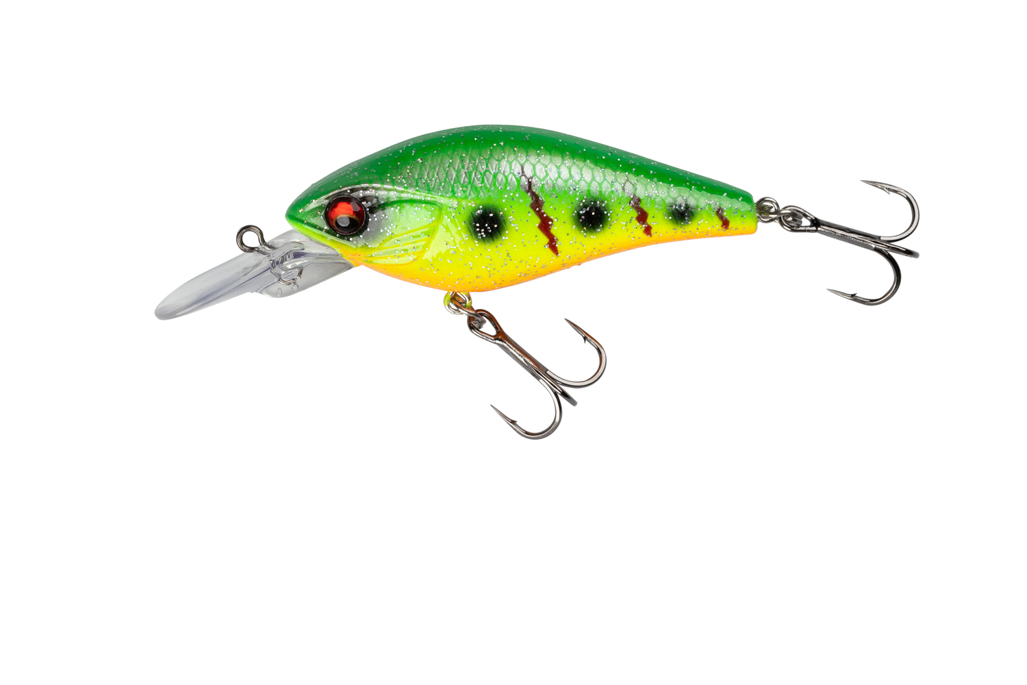 Strong wobbling action, Stable swimming under various retrieve speeds, Diving depth 1.2-1.8m, Rattle sound to activate reaction strikes